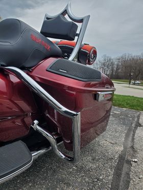 - Si usa cubiertas de guardabarros; los rieles pueden tener problemas de espacio libre. Solo se ajustarán a cubiertas de guardabarros originales en Street Glide, Road Glide y Electra Glide.