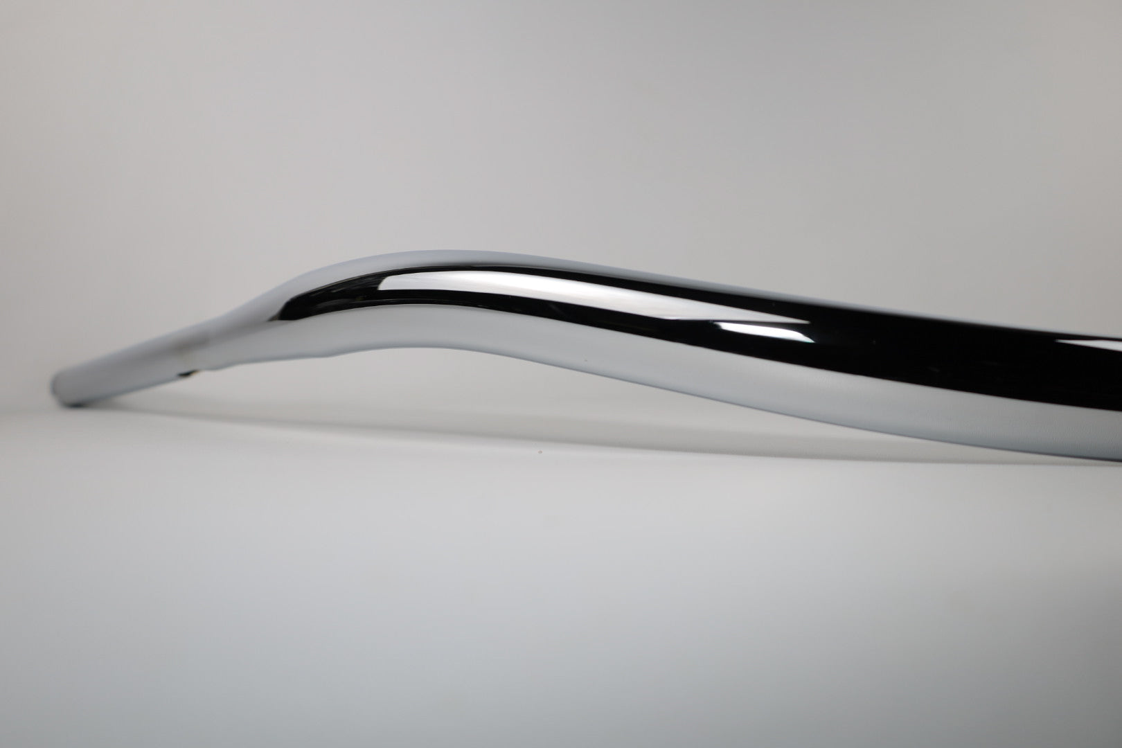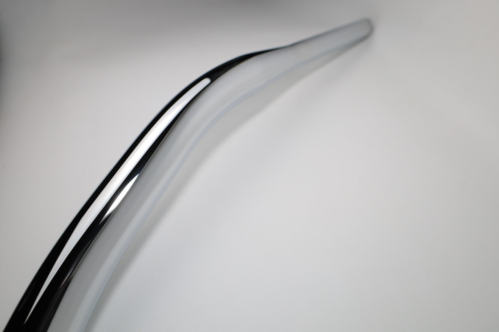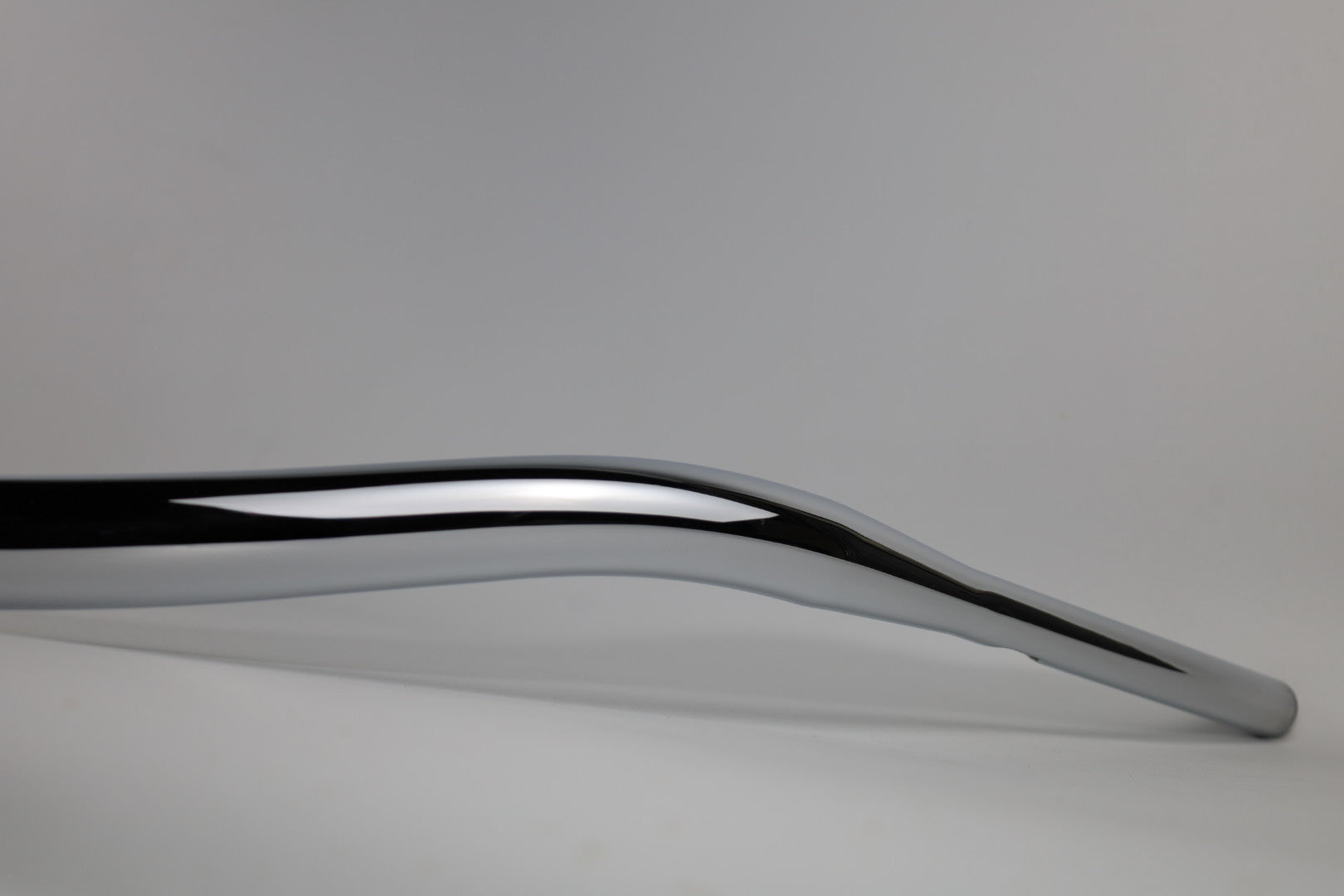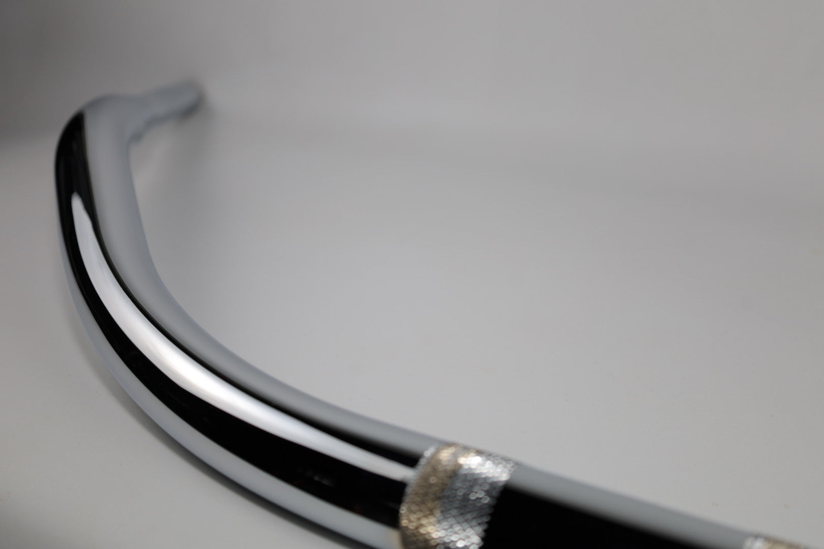 El manillar Steady Custom Cycles Arrow es único en comparación con los típicos manillares estilo “playa” que están disponibles actualmente en el mercado. Las curvas y líneas de las barras Arrow tienen transiciones agradables y suaves entre todas las curvas, asemejándose a los diseños únicos de un arco recurvo tradicional. El Arrow comienza su vida como un tubo de 1-1/2″ que se ha formado suavemente y se ha ahusado 1″, eliminando cualquier unión incómoda o “punto plano” en el manillar; que se encuentran comúnmente en otros manillares del mercado.