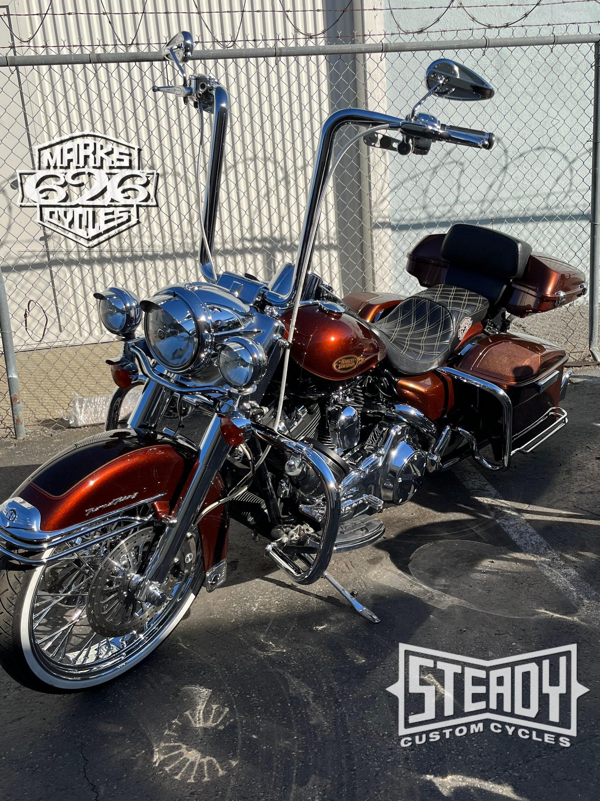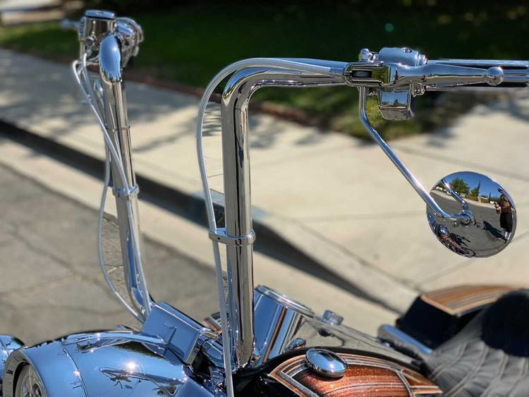 La línea completa de manillares de Steady Custom Cycle está mecanizada, formada y terminada en los EE. UU., a partir de acero laminado en frío de pared de 0,120 pulgadas que ha sido completamente soldado con TIG en cada área de unión. ¡Todas las ranuras cruciales están hechas para el cableado interno, el pasador de posicionamiento para las abrazaderas del manillar y el acelerador por cable (TBW)!