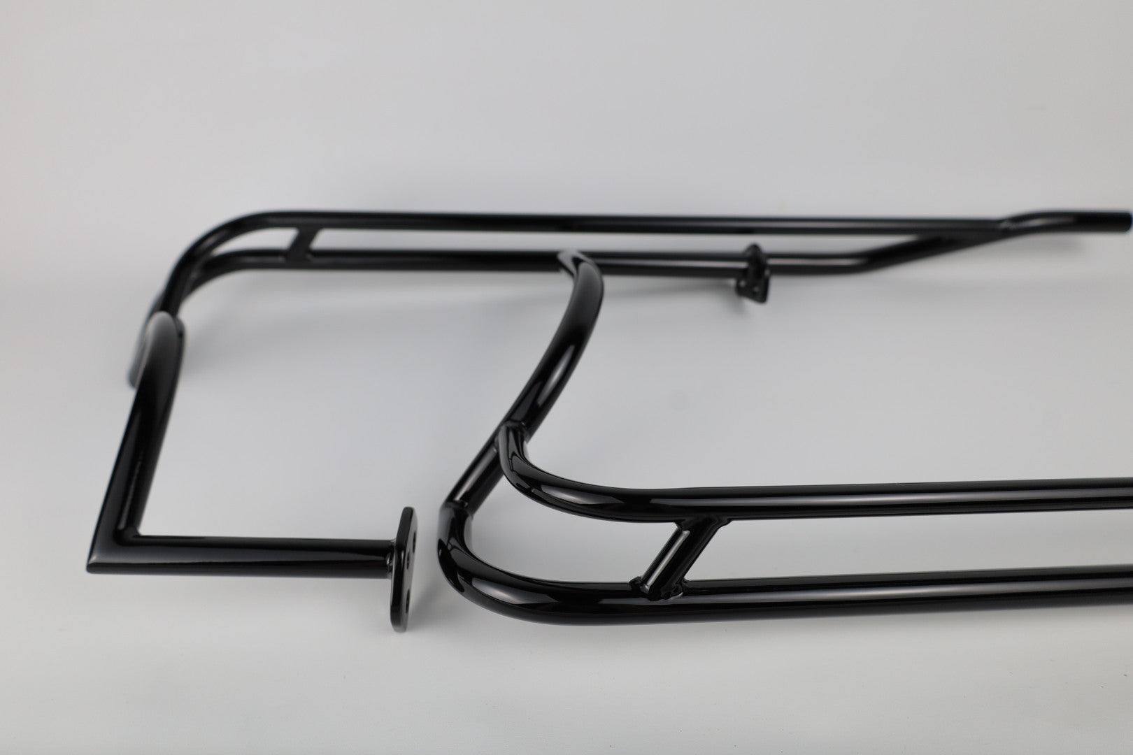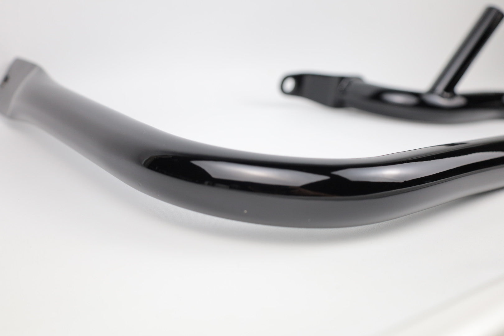 What is eye catching is our Extended Bag Rails, in order to use the rails, you'll need the bag guards. That is why it is sold as a set and the rails are not sold individually. The difference between our bag guards and the stock guards is that our SCC Short Tradition Guards is more heavy duty. With a 1.25" diameter tubing with a chrome finish or powder coated gloss black. The 1.25" matches with the 1.25" stock engine guards.