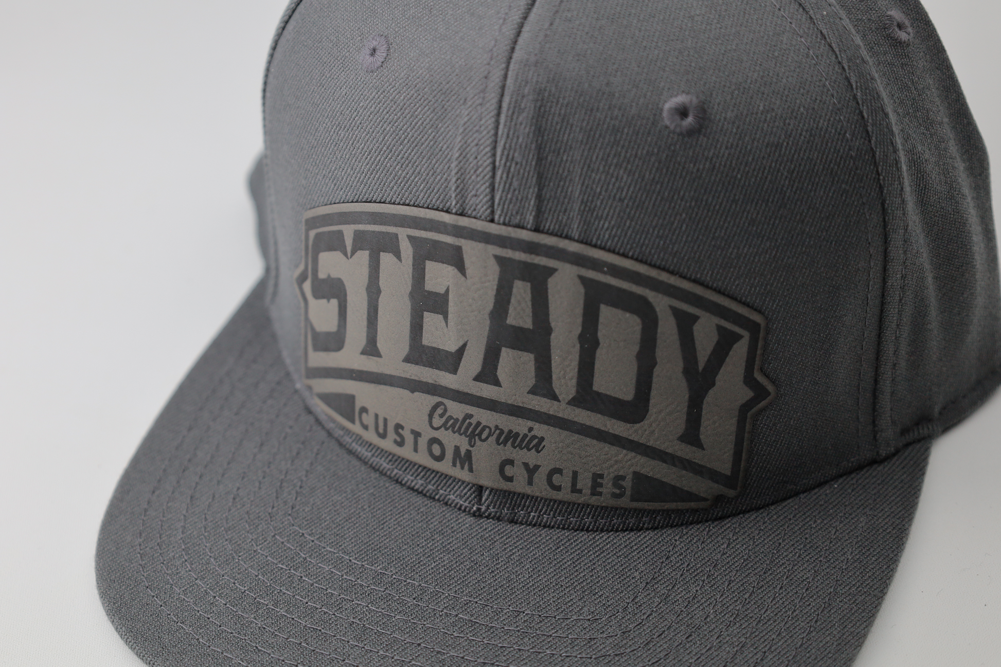 Snapback hat with two different colors along with leather patch.