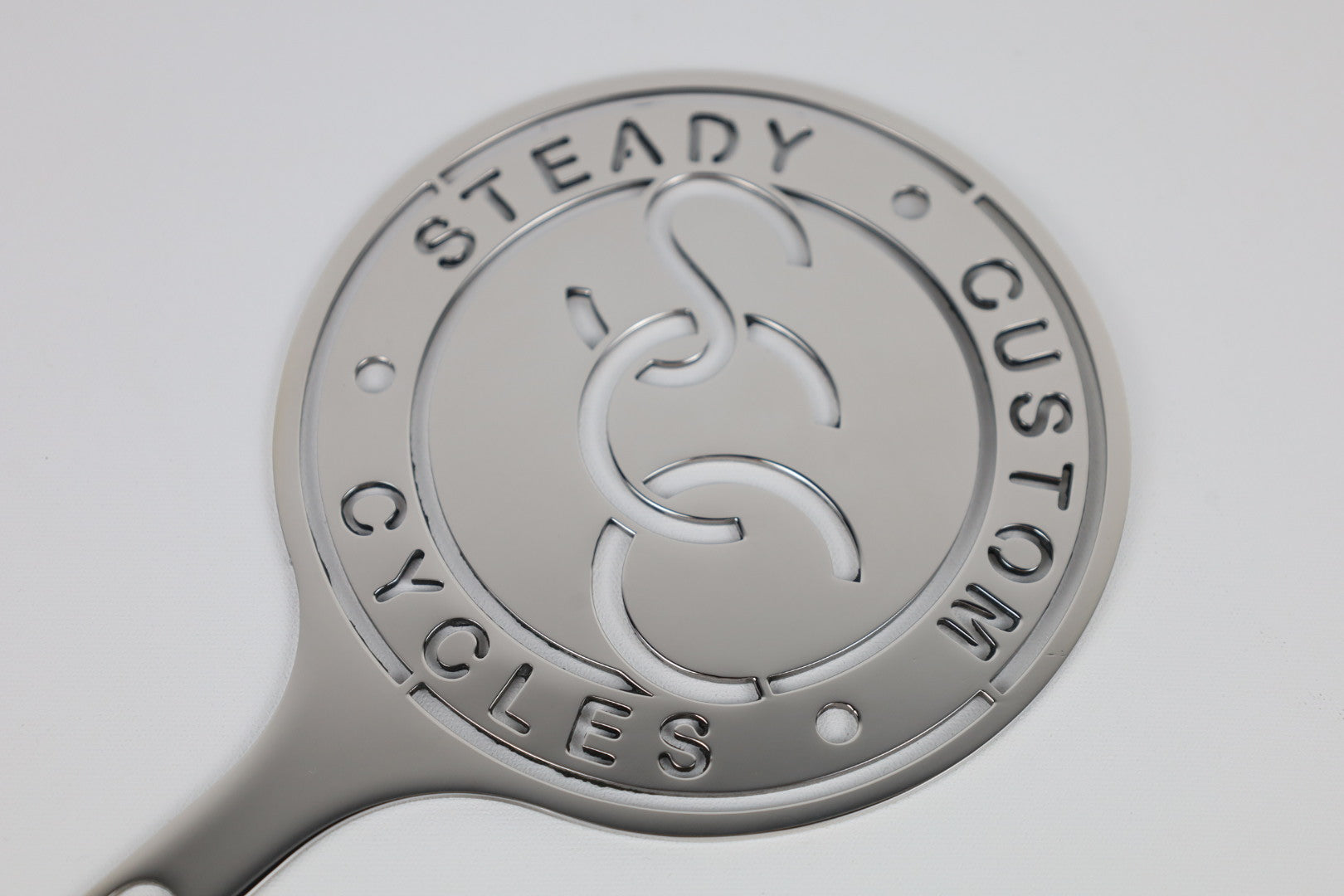 Our license plate topper is a nice, polished stainless steel. The topper is 4 inches wide and 5.75 inches tall. The installation hole is about 5/16 cm, and the support is 1/2 inches. The license plate topper only comes in the color chrome. This product is eligible for free shipping if purchased separately from other products.