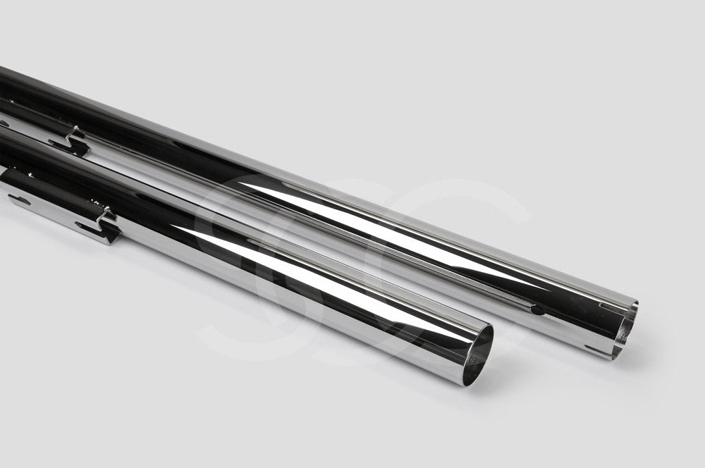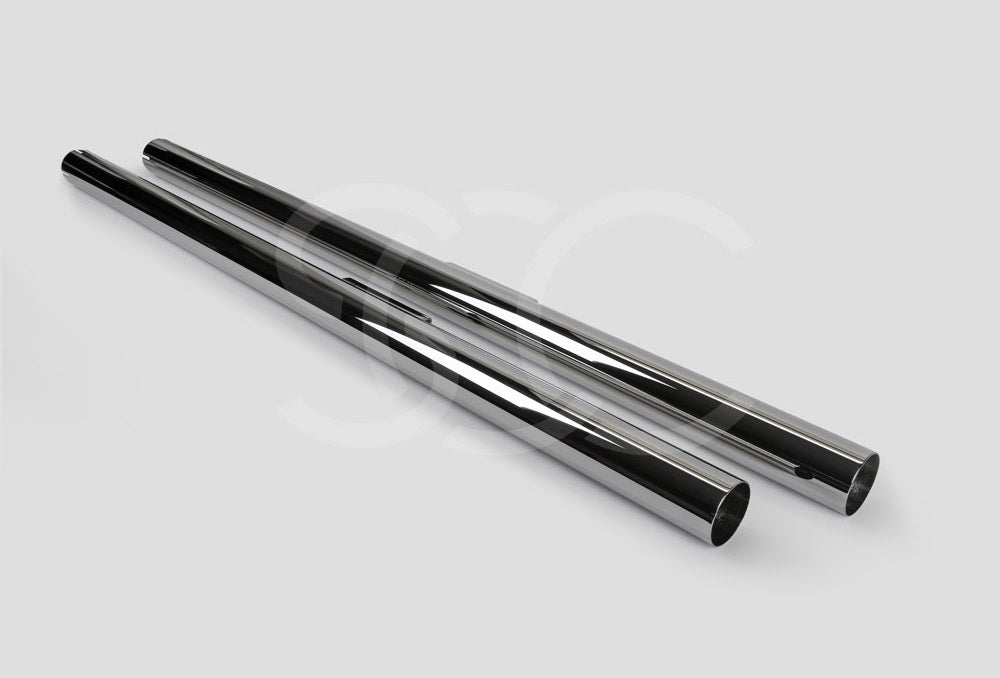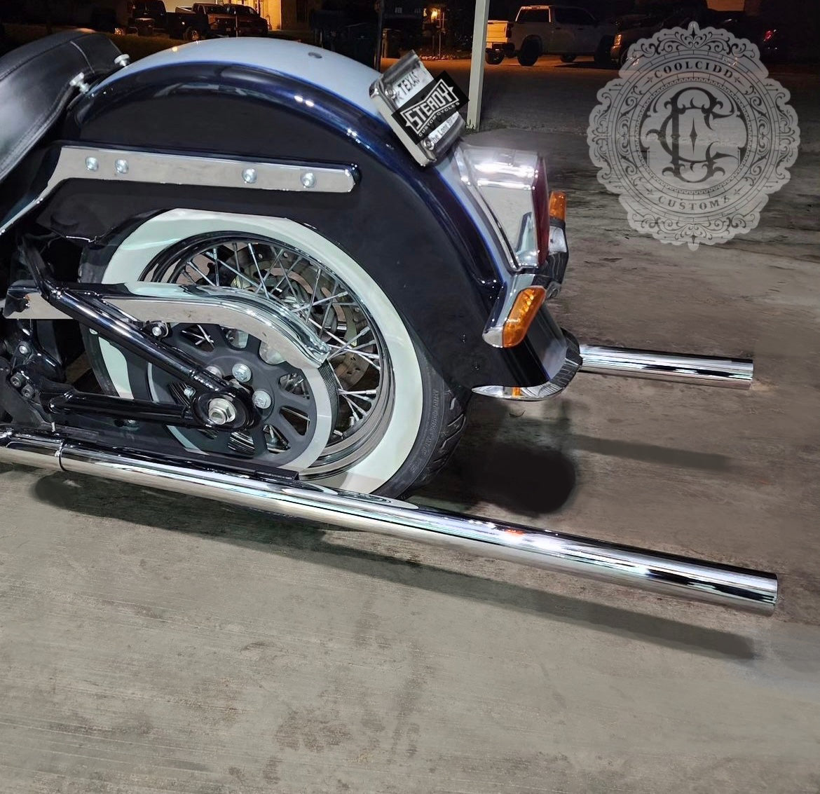 Steady Custom Cycles slip-on Straight Pipes are crafted to the highest quality we can possibly offer! True show quality! The Straight pipes do not have any type of baffling, they are indeed louder than the stock slip-ons. For touring models we strongly suggest going with the 2" diameter in order to not lose performance.